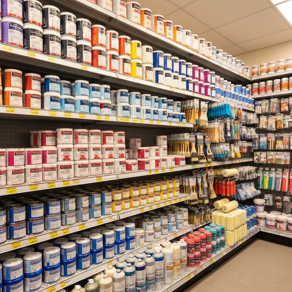 Tintas acrílicas, esmaltes, vernizes, primers e acessórios para pintura.